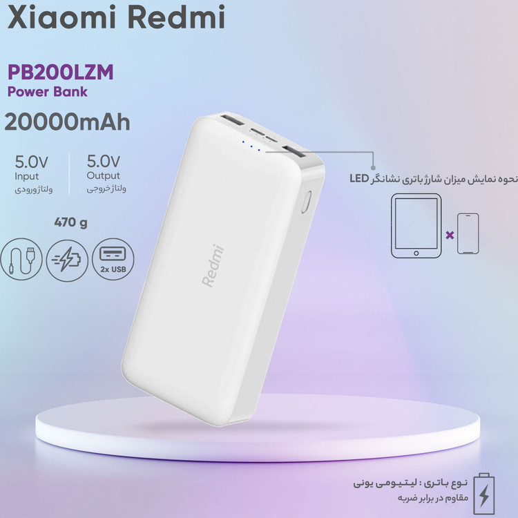 پاوربانک شیائومی مدل PB200LZM (20000mAh) اصل